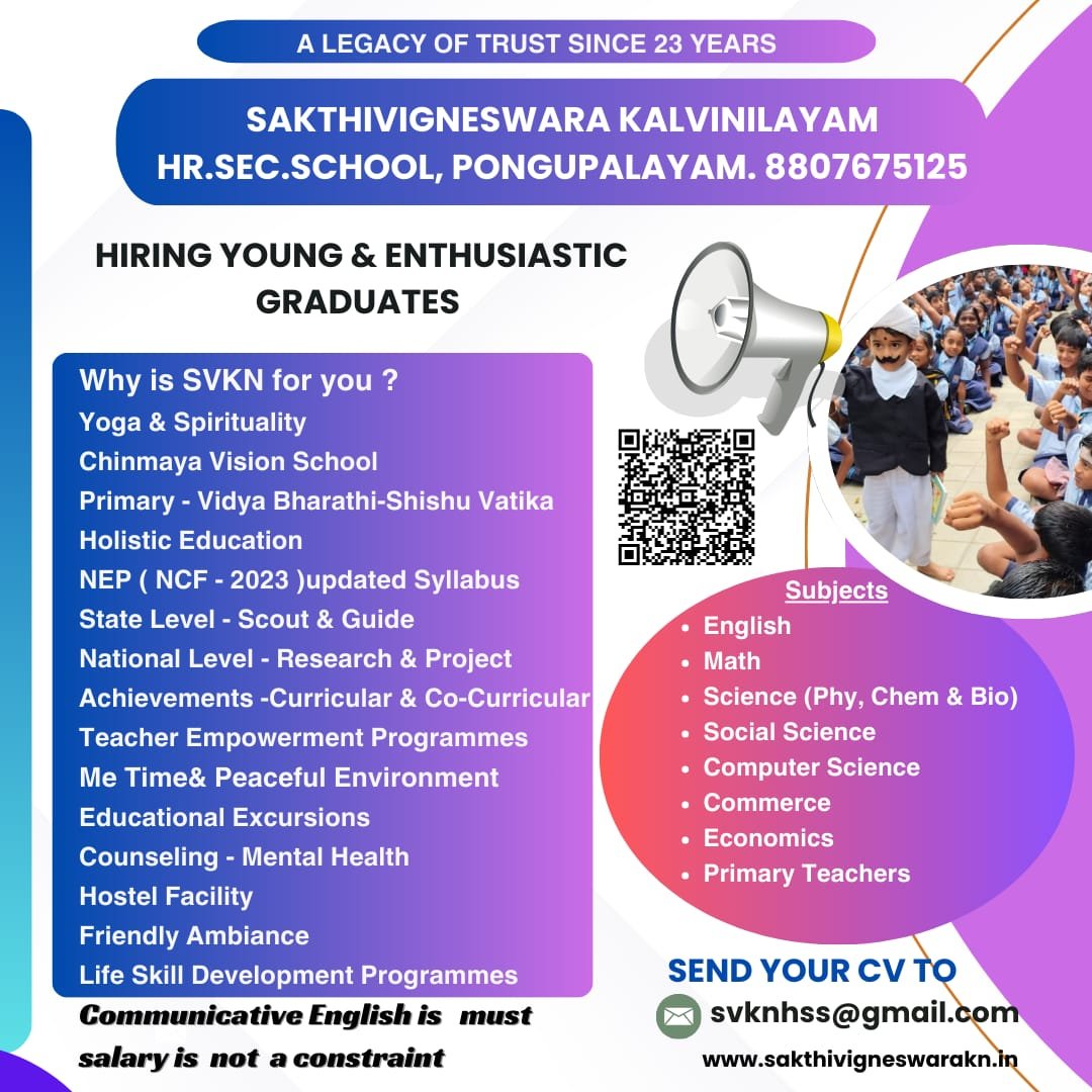 Post Graduate Teacher Job Opening In Our School Now Wanted qualified PGT Teacher In English,Hindi,Montessori trained teachers For Kindergarten